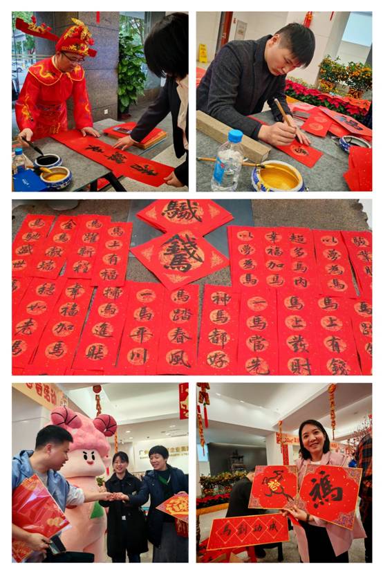 广德大厦一楼化身红色文化长廊,“财神爷”与“福手”挥毫泼墨,800余副鸿运福字与迎春对联跃然纸上,员工欢乐领取。“中国红,幸福年”珠江牌“省凳”助力主题展区,由塑料板块管培生设计的吉祥物“江江”手持“珠江”文创礼品穿梭人群,憨态可掬的互动瞬间成为朋友圈“爆款”。