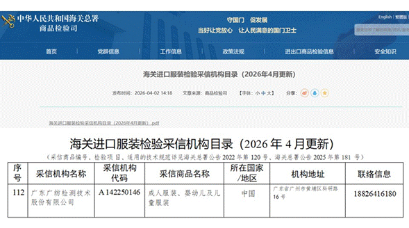 喜报:纺织公司旗下广纺检测成功入选海关总署进口服装检验采信机构
